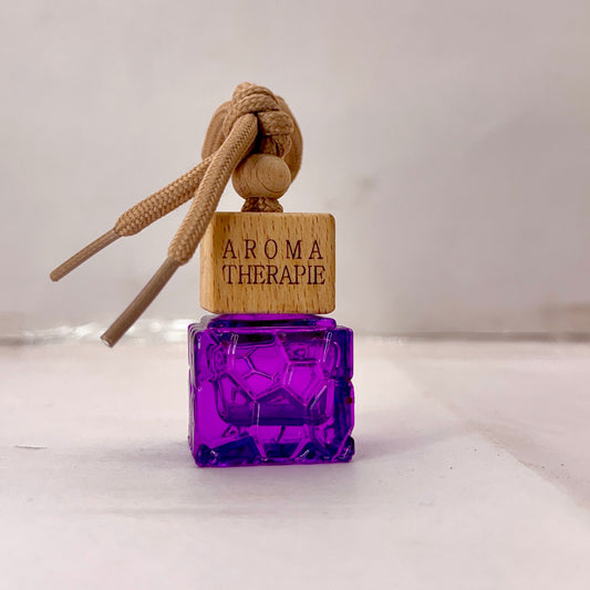 Aroma Car Air Freshener Hanging with Fragrance | Car Air Perfume in Square Glass Bottle with Wooden Diffuser Lid (8ml)